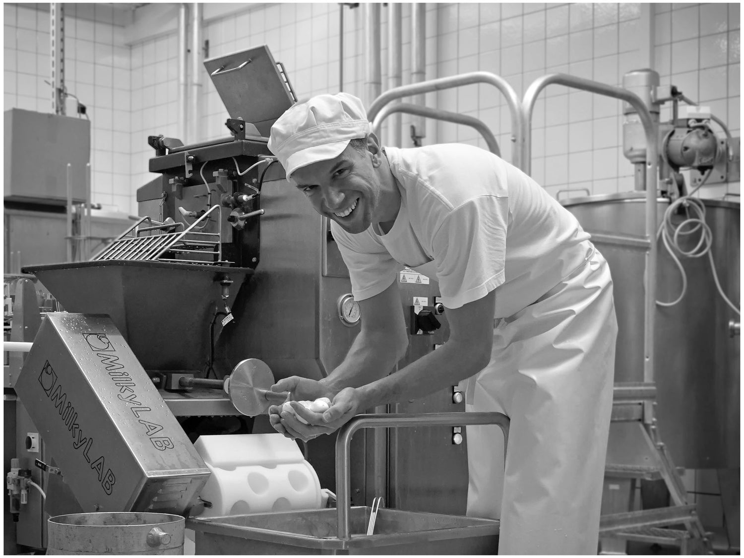 Wir verarbeiten nur silofreie Kuhmilch, die von Milchbauern aus der Region geliefert wird. Bei uns wird auf handwerkliche Art und Weise produziert, so wie es früher üblich war. Wir verwenden keine Konservierungsstoffe.